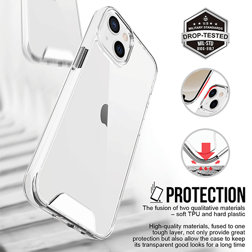Κατασκευασμένο από ένα μείγμα οπτικά διαυγούς πολυανθρακικού και εύκαμπτων υλικών TPU. Η διαφανής θήκη τηλεφώνου κατά της πτώσης παρέχει σταθερή, άνετη αίσθηση. Η πλάτη έχει σχεδιαστεί για να είναι στιβαρή, ενώ τα πλαϊνά είναι κατασκευασμένα από πιο μαλακό, πιο εύκαμπτο υλικό που ταιριάζει ακριβώς πάνω από τα κουμπιά για βελτιωμένο κράτημα. Στην επιφάνεια έχει εφαρμοστεί επίστρωση ανθεκτική στις γρατσουνιές τόσο στο εσωτερικό όσο και στο εξωτερικό. Και όλα τα υλικά και οι επικαλύψεις έχουν βελτιστοποιηθεί για να αποτρέπουν το κιτρίνισμα με την πάροδο του χρόνου. Όπως κάθε θήκη που έχει σχεδιαστεί από την Apple, υποβάλλεται σε χιλιάδες ώρες δοκιμών σε όλη τη διαδικασία σχεδιασμού και κατασκευής. Έτσι, όχι μόνο φαίνεται υπέροχο, αλλά είναι κατασκευασμένο για να προστατεύει το iPhone σας από γρατσουνιές και πτώσεις.